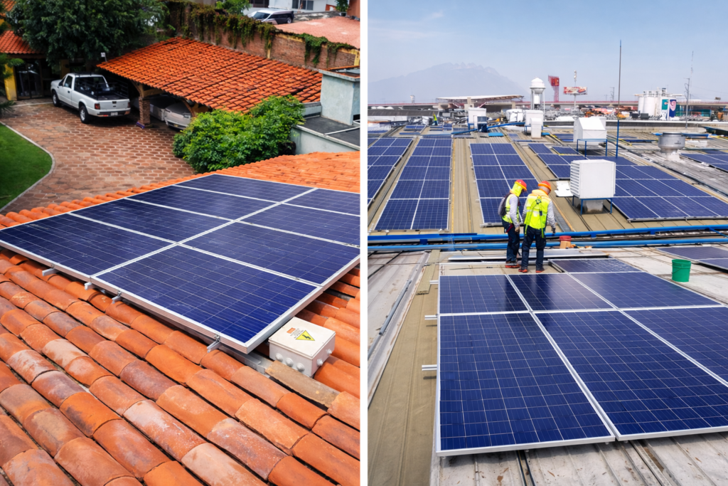 Imagina que tu casa funciona como un pequeño ecosistema solar… y una planta industrial, como una ciudad completa. Ambos pueden usar paneles solares, pero la diferencia entre uno y otro no es solo de tamaño: es también de voltaje, potencia y nivel de seguridad requerido.